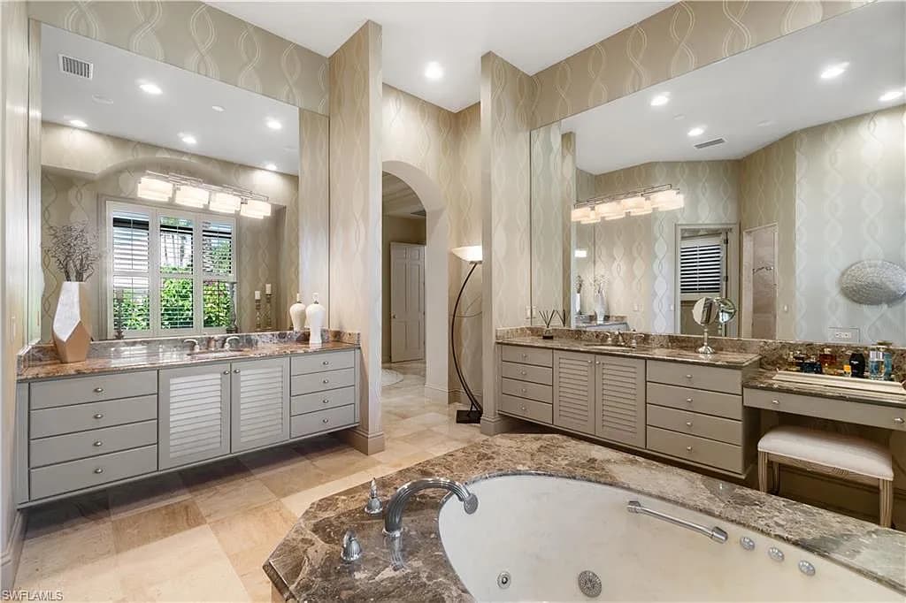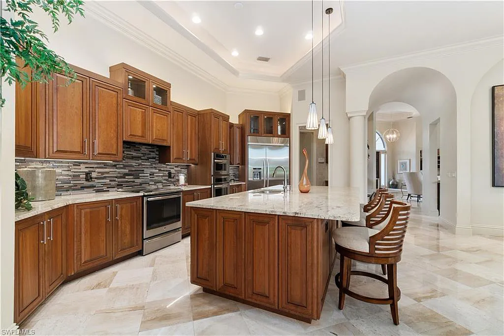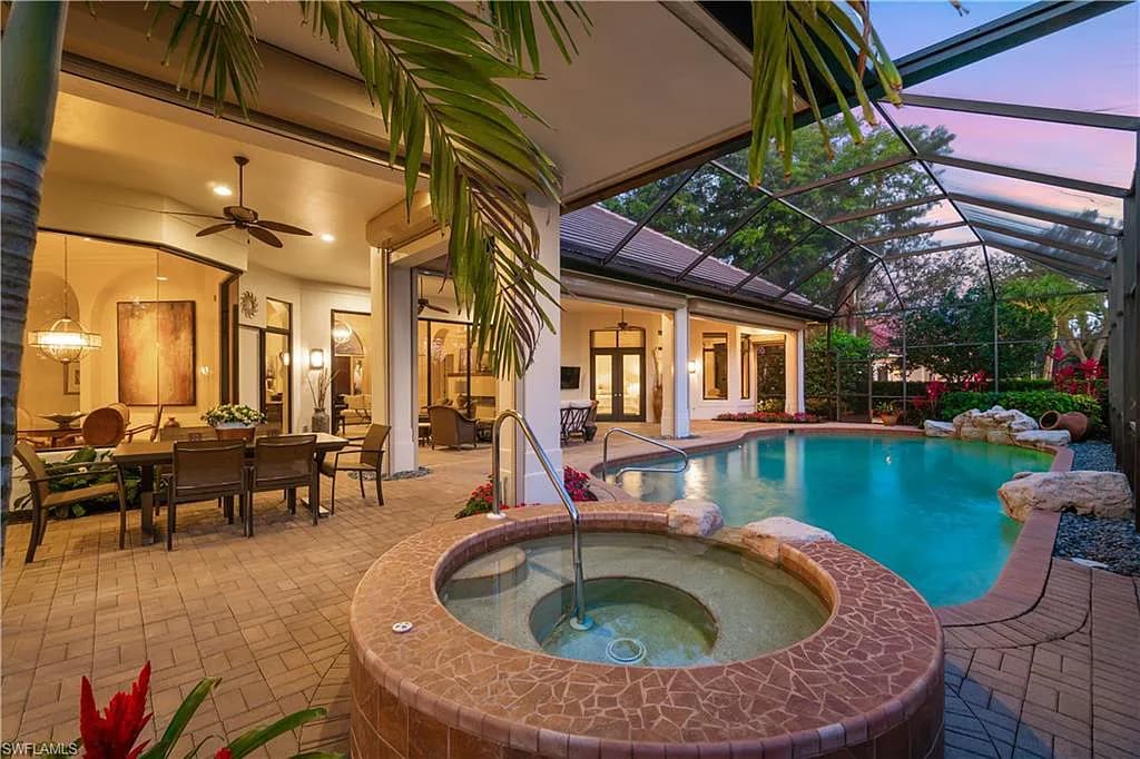 Amongst the finest homes offered in Audubon! Fully renovated home with spectacular Western exposure, located on a fantastic estate lot offered in North Naples’ coveted Audubon Golf & Country Club! Delight in prime sun & breathtaking sunsets on your fully screened heated pool/spa with ample sitting area & a gas outdoor kitchen. An entertainer’s dream with a spectacular open floor plan, over 4,400 sq ft, VIP suite with an attached bonus den/TV room & soaring volume ceilings. Chef’s kitchen includes stainless steel appliances, walk-in bar area & granite counters. This immaculate estate offers a new roof in 2021, 2 new hot water heaters in 2021, 500 gal. underground propane tank, surround sound, air-conditioned 3-bay garage with built-in cabinets, whole house generator, is fully storm protected with electric hurricane shutters & SO MUCH MORE! North Naples' "Audubon Country Club" is perfectly located 5-min from Mercato & SWFL's world-class beaches, with gated/guarded entry, 18-hole championship Golf Course, tennis, pickleball, Bayside boardwalk, newly renovated clubhouse with dining & 2nd brand-new spectacular poolside club/café & fitness center.