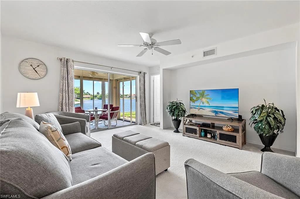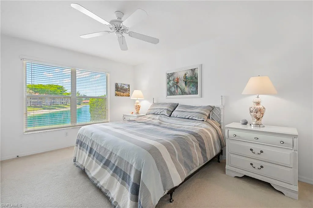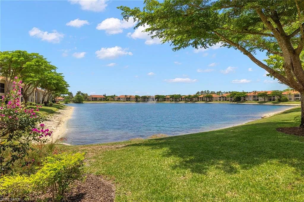 Clean comfortable turnkey furnished condo with 2 bedrooms and 2 full bathrooms. Awesome lake views and a screened lanai with desirable southeastern exposure. Ground floor unit with covered carport. There is a large additional storage closet and roll-down hurricane storm shutters in the lanai. This is the perfect move-in ready vacation home, primary residence, or rental investment. Huntington Lakes is a pleasant gated community conveniently located in north Naples. The neighborhood's lush landscaping and common grounds are always well-kept. Friendly neighbors walk & bike the paved sidewalks within. The Clubhouse is nice, overlooking a beautiful lake. Amenities include a main resort pool in addition to 2 satellite pools, a hot tub spa, BBQ grill area, bocce, tennis, billiards, library, exercise fitness room, and many social community activities are hosted in the spacious entertainment hall. There is a 2nd gate for residents only, providing convenient access in or out. This north Naples location is only about 6 miles to Delnor-Wiggins Pass State Park & beach, and also to Vanderbilt Beach. There's a public golf course just 3 miles away. Dining, shopping, parks, and more are all nearby.